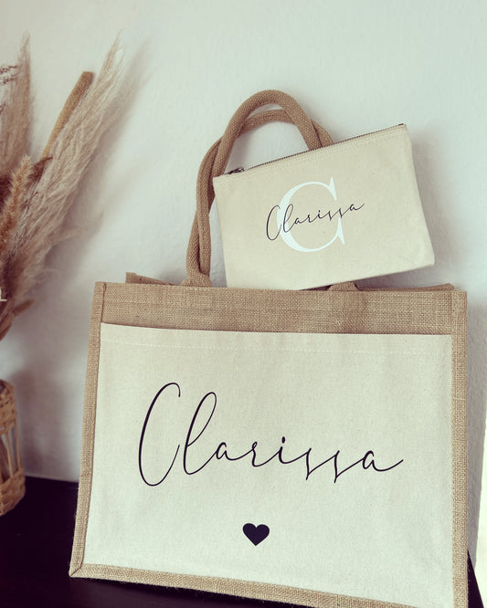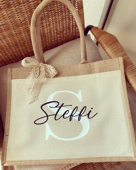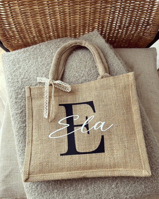 Jutetasche - Filigran Name & Anfangsbuchstabe